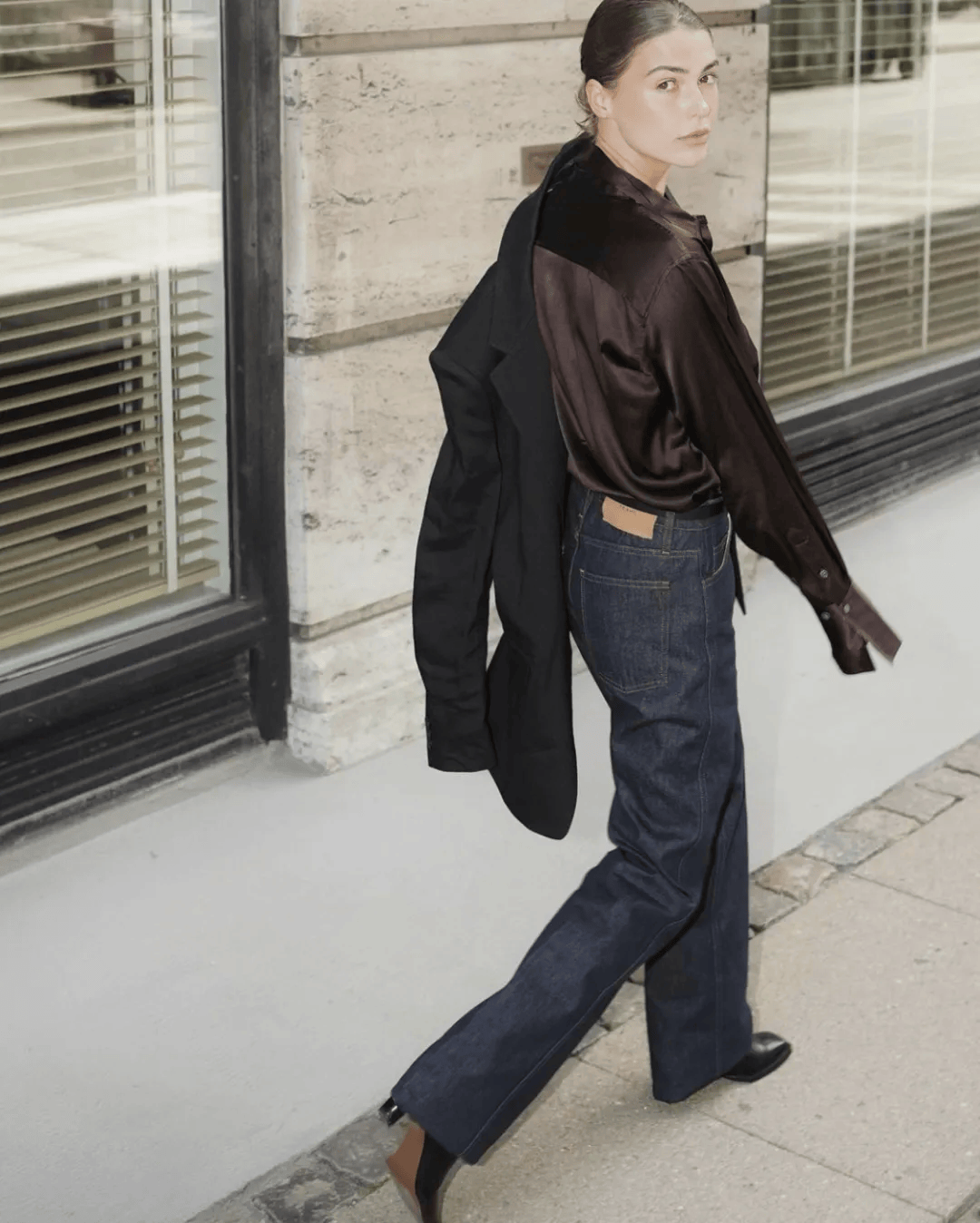 黑色真丝衬衫,感受放松的自在感,轻松穿出率性雅致的韵味。能够轻松打造出知性的气质,同时增添一份强大的气场,搭配一件黑色牛仔裤,散发出一种女性独立的穿着氛围,尽显大女人的知性独立魅力,外穿一件黑色西装外套,将女人的气质瞬间放大,释放出高级又显瘦气势