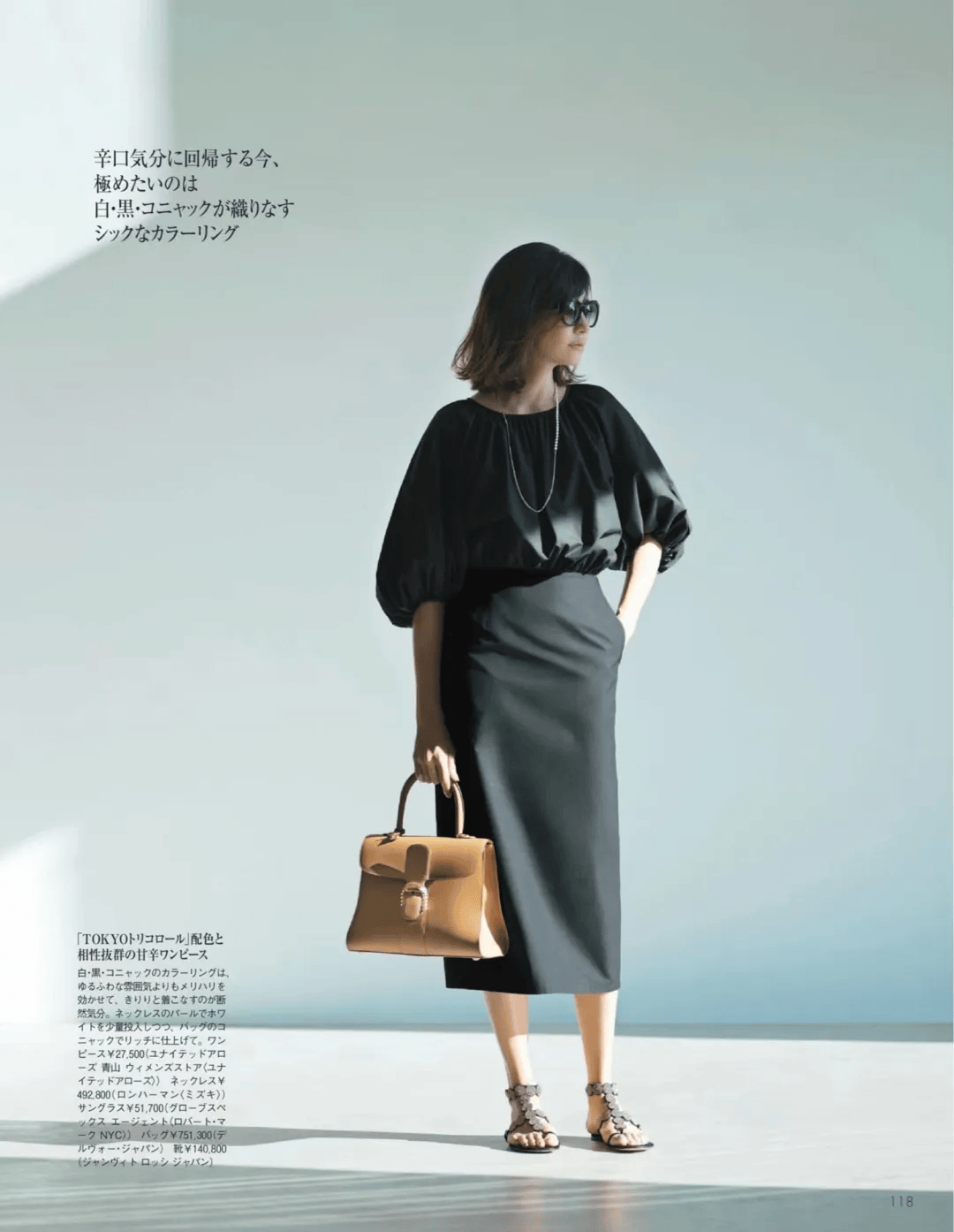 黑色灯笼袖黑色上衣,能穿出独一无二的气场与风度,都有着不可抗拒的魅力,穿出别样的精髓,搭配一件黑色直筒半裙,可以实现恰到好处的平衡,散发出优雅、利落高级的氛围感,搭配一双凉鞋,更是在人群中显的那么高级有气场