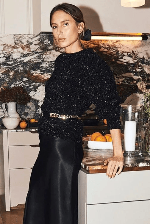 黑色针织毛衣,散发出独特的魅力气质,轻松穿出自由洒脱的风格,搭配一件黑色真丝半裙,恰到好处地为黑色带来温度与活力,穿出经典又高级的气场,系上金属腰带,游刃有余地穿梭在城市中,更是每一步都显得高挑又纤瘦。